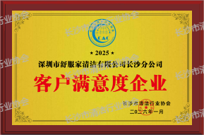 深圳舒服家清洁有限公司长沙分公司在2025年度中荣获《客户满意度企业》《十佳清洁服务企业》《质量服务双优企业》