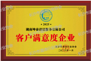 湖南坤泰清洁服务有限公司在2025年度中荣获《客户满意度企业》《质量服务双优企业》《劳动关系和谐企业》