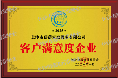 长沙市蓓蓓家政服务有限公司在2025年度中荣获《客户满意度企业》《十佳清洁服务企业》《质量服务双优企业》