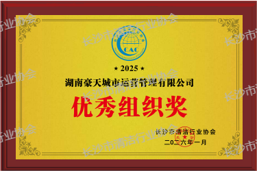 湖南豪天城市运营管理有限公司在2025年度中荣获《十大标杆项目》《十佳清洁服务企业》《优秀组织奖》