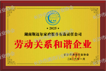 湖南斯迈尔家政服务有限责任公司在2025年度中荣获《劳动关系和谐企业》《优秀组织奖》《创新企业》