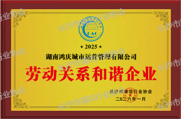 湖南鸿庆城市运营管理有限公司在2025年度中荣获《创新企业》《十大标杆项目》《劳动关系和谐企业》
